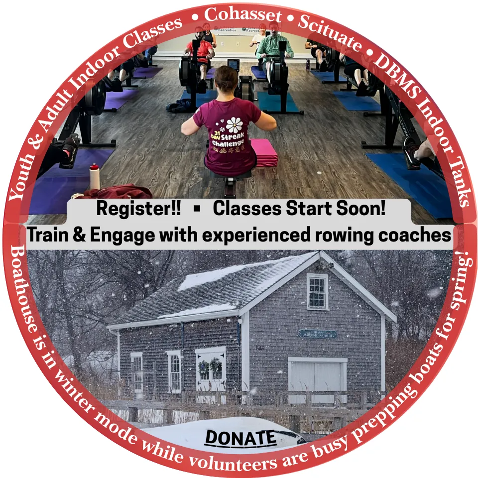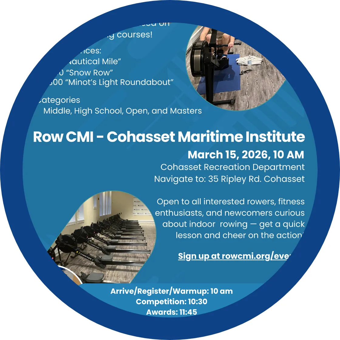 Cohasset Maritime Institute (CMI) promotes the extraordinary maritime heritage of our town through rowing. Since 1994, our programs let youth and adults stay fit, experience the teamwork and camaraderie unique to coastal rowing. CMI aims to foster sportsmanship, fitness, teamwork, and friendship for rowers of all ages and skill levels. We offer opportunities for participation in safe, challenging events that emphasize competition, inclusiveness, and celebrating achievements to the best of one's abilities.